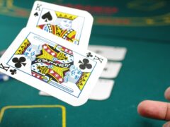 全員の賭け金が揃ったら、ディーラーが表向きにカードを1枚配ります。この場に配られた5枚のカードと自分が持っている2枚のカードで、賭けを行います。前回までと同じように賭け、もしくは降ります。